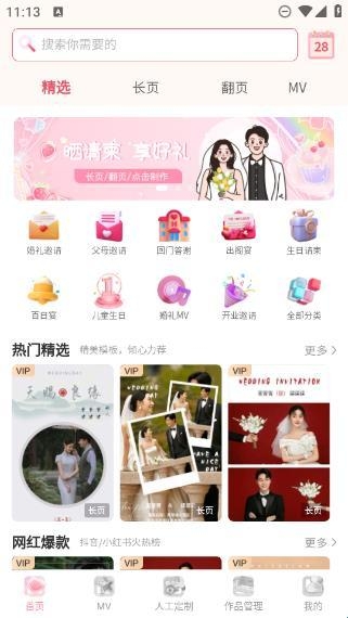 6、精美的婚礼请柬模板库,满足不同主题和场景的需求;