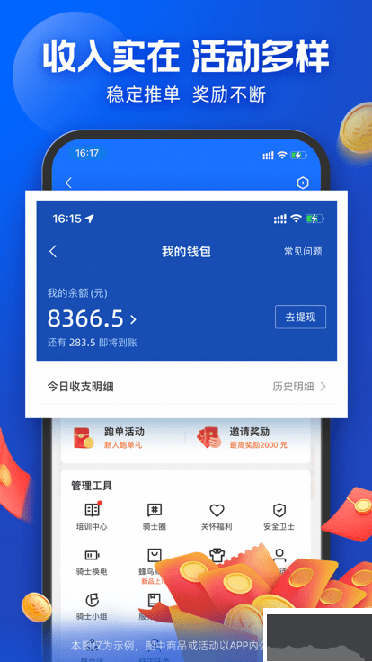 依托饿了么平台海量订单,多劳多得不封顶,工作稳定奖励多样;