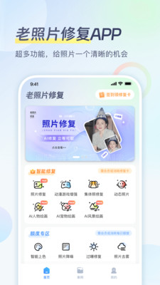 老照片修复让老旧破损照片变清晰,通过自助老照片修复app一键快速修复模糊斑光折痕等问题,还有智能上色,人像抠图等功能!